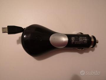 permette di ricaricare in auto il proprio telefono cellulare eliminando il pericoloso ingombro dei cavi attorcigliati: finita la ricarica basta premere l'apposito pulsante per richiamare il filo all'interno del carica batterie.