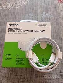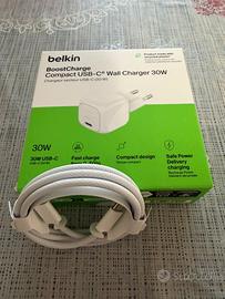 Caricabatteria Belkin 30w USB-C PD 3.1 ultrarapido ottimo soprattutto per iphone con cavo di ricarica type c nuovo originale Apple. Prezzo affare. Dichiaro che si tratta di prodotti originali.