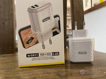 Caricabatteria per cellulare e vari dispositivi. Doppia uscita, carica veloce, 18W, massimo 5.0A