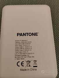 Caricabatterie portatile Pantone mod. PT-PB5000, 2 porte USB + 2 porte micro USB, capacità 5000 mAh/18,5 Wh, usato soltanto una volta per verificarne la funzionalità, nella sua confezione originale (leggermente rovinata durante l'apertura), completo di manuale d'istruzioni originale e cavo di ricarica originale.
