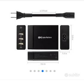 Vendo caricatore e caricabatterie originale Cable Matters 72W 4-port USB, modello con 1 porta USB-C Power Delivery (fino a 60W, compatibile anche Thunderbolt per notebook e ultrabook) e 3 porte USB-A da 2,4A/12W ciascuna.