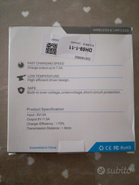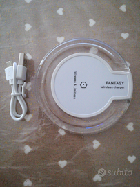 Caricabatterie per cellulare Wireless . Misure 100mm X 9.5 mm ,peso 80 g . NUOVO . DOTATO DI CAVETTO USB ORIGINALE E APPOSITA CUSTODIA ORIGINALE CON RISPETTIVO FOGLIO ILLUSTRATIVO .