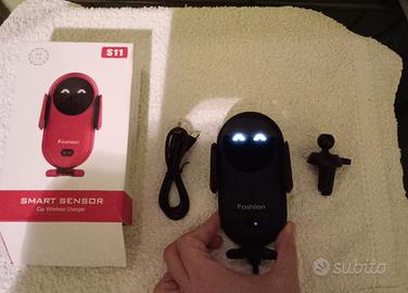 Caricabatterie iPhone nero wireless per auto , con supporto per telefono con morsetto automatico