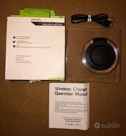 Caricatore caricabatterie per cellulare wireless ottimo perfettamente funzionante nella sua scatola originale. Nuovo. Per dettagli vedi foto Input 5V / 2A Output 5V / 1,5A