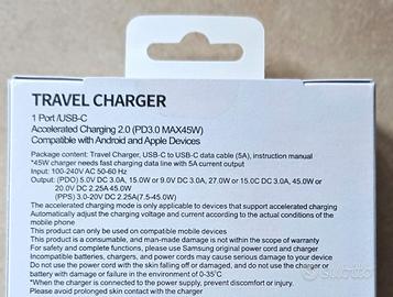 Caricabatterie Samsung 45 W PD Adapter, caricatore, Super Fast Charging con cavo da Usb-C a Usb-C lungo 1 metro di colore nero.