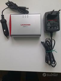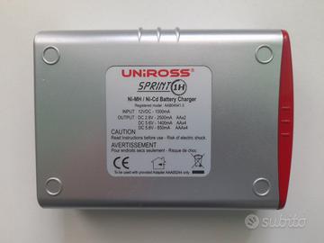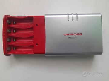 Caricabatterie Uniross Sprint 1 Hour, per Batterie Stilo AA e Ministilo AAA. Corredato di alimentatore x auto. Possibilità di ricaricare 2 o 4 batterie contemporaneamente.