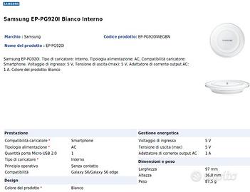 Caricabatterie wireless per Samsung Galaxy S e S Edge (EP-PG920I)