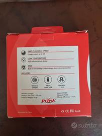 Caricabatterie wireless per smartphone marca Prink con cavo di collegamento usb. Specifiche tecniche in foto.