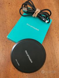 Caricabatterie wireless RAVPower standard Qi, compatibile con vari smartphone, inclusi modelli Samsung e iPhone.