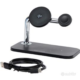 Caricatore wireless 3 in 1 Grundig 15 watt Adatto anche per telefoni, smartwatch e auricolari Possibilità di caricare 3 dispositivi contemporaneamente Realizzato con il 30% di materiale riciclato Non dovrai più cercare cavi sparsi ovunque! Con questo caricabatterie wireless 3 in 1 puoi ricaricare contemporaneamente smartphone, smartwatch e auricolari. Compatto, elegante e super pratico da tenere sul comodino, sulla scrivania o in viaggio. In questo modo avrai sempre tutti i tuoi dispositivi carichi e pronti all'uso. Specifiche ColoreNero, Bianco Ideale per il tipo di apparecchioSmartphone Lunghezza del cavo1 m Supporto smartphone per auto con ricarica wireless Grundig Caricabatterie da auto Qi Con braccio estensibile da 8,9 cm a 13,5 cm Cavo USB-C incluso Specifiche Ideale per il tipo di veicoloAuto InclinabileSì Tipo di collegamentoUSB-c Tipo di caricatoreCaricatore per telefono cellulare