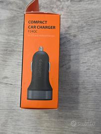 Caricatore auto compatto Spigen F24QC con doppia porta USB. - Compatibile con dispositivi iOS e Android. - Uscita 2.4A x2. - Cavo non incluso.
