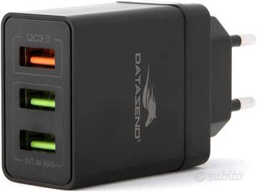 Caricabatteria Multiporta USB rapido: QC 3.0 - 3 porte USB