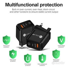 š CompatibilitĆ Universale: Supporta i protocolli PD 3.0 e QC 3.0. Ideale per iPhone (dal 15 Pro al 14), iPad, Samsung, Huawei, Xiaomi, Pixel e MacBook Air, oltre a tutti i device con porta USB-C.