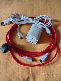 Il caricatore è super compatto, comodo anche da portare in giro. Il cavo rosso è lungo 2m, quelli bianchi 1m.