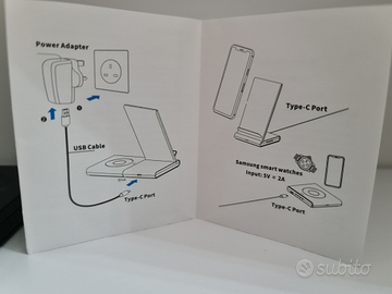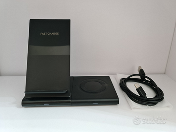 Con questo dispositivo è possibile ricaricare contemporaneamente uno smartphone appoggiandolo allo schienale e anche orologi e altri dispositivi appoggiandoli sul piano piatto.