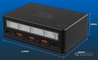 Caricatore USB C, Caricatore USB Multiplo Carica Rapido 110W Multi USB Alimentatore con PD 65W QC4.0 da 60W, Stazione di Ricarica USB Multipla con Spina per MacBook iPhone 15 iPad Pro Samsung S24 ecc