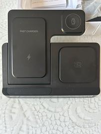 Caricatore wireless 4 in 1 per iphone airpods e apple watch compatibile con tanti modelli. Ricarica contemporaneamente i 3 dispositivi appoggiandoli sul dock senza avere tre caricabatterie. Nuovo senza cartellino nella sua scatola e confezione originale