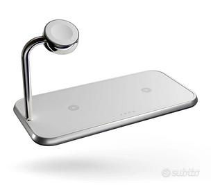 Vendo caricatore wireless compatibile con tutti i dispositivi wireless ( no magsafe ) con due basi per smartphone o cuffie e una base per smartwatch…compatibile anche con Apple.