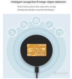 Ricarica magnetica ad assorbimento automatico: la bobina magnetica integrata si allinea all'anello interno dello smartphone, creando un campo magnetico perfettamente opposto che fornisce una ricarica ad alta efficienza. Bobina in rame migliorata e certificata Qi, per una ricarica più veloce e più potenza: supporta i sistemi di ricarica wireless a 15/10/7,5/5 W: modalità 15 W (con caricabatterie QC2.0 o QC3.0 da 12 V/2 A); modalità 7,5/10 W (con caricabatterie QC2.0 o QC3.0 da 9 V/2 A); modalità 5 W (con caricabatterie da 5 V/2 A o 5 V/2,4 A); compatibile con tutti i dispositivi Qi. Il dispositivo è dotato di una serie di funzionalità di sicurezza e protezione che prevengono surriscaldamento, cortocircuiti, dispersione di campi magnetici, scaricamento eccessivo e sovraccarico. Il dispositivo include le seguenti funzionalità avanzate: interfaccia di ricarica Type-C, funzionamento a basse temperature, distanza di ricarica inferiore a 5 mm, riconoscimento intelligente del dispositivo, rilevamento di oggetti estranei, bobine indipendenti, efficienza di conversione energetica fino all'80%, design antiscivolo su entrambi i lati. Il sistema di ricarica adattivo disattiva il processo di ricarica automaticamente se vengono rilevati oggetti estranei in metallo; per ottenere la massima efficienza di ricarica, è necessario rimuovere le custodie con uno spessore superiore ai 5 mm.