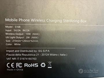 Box disinfettante, con funzione profumazione e caricatore wireless rapido. Nuovo, mai usato.