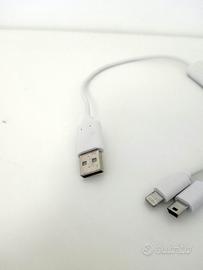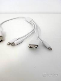 Vendo per inutilizzo un cavetto di ricarica con uscite USB mini, USB micro, iPhone vecchio e nuovo tipo. Lunghezza circa 25 cm. Mai usato. Prezzo 3 euro con consegna a mano a Colonna (RM). Spese di spedizione a carico dell'acquirente.