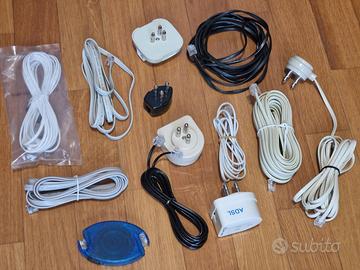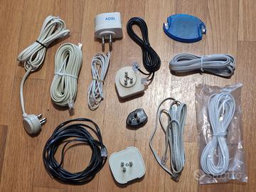 Vendo ammasso di cavi vari, per telefono, ethernet, usb, cavi video per PC, e vari accessori come da foto. Molti di questi sono nuovi e mai usati, erano ancora negli involucri. Li ho scartati per fare le foto.