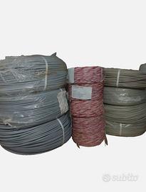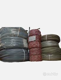 Vendo Stock Cavi Telefonici di vario tipo: 3 Matasse di Cavo Bronzo 2x1 (300m L'una) 4 Matasse di Cavo Politene 2x06 (250m l'una) 5 Trecciole Bianco-Rosse 2x06 (250m l'una) 3150M TOT. Il prezzo include tutto ed è trattabile, per maggiori informazioni in privato.