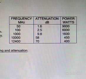 per chi vuole il massimo cavo coax M17/92-00001 nuovo. in HF l attenuazione è quasi nulla. eccellente sulle alte frequenze V/U Fino alle Giga. questa bobina è di 20metri cm+cm- per questa lunghezza in pratica non c'è nessuna attenuazione.