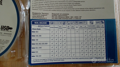 Vendo questo cavo ancora nella sua confezione originale per collegare al PC vecchi cellulari Nokia. Vedere le foto per sapere quali modelli. Possibilità di spedizione