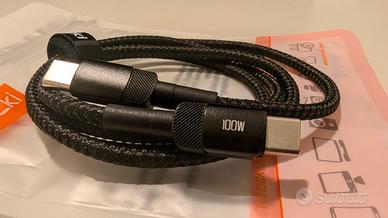 Cavo USB-C, Type-C, Ricarica Rapida, Fast Charge, 100W, Power Delivery, PD 3.0, E-Marker, Cavo iPhone 15, Cavo iPhone 16, Samsung Super Fast Charge, S24 Ultra, S23, S22, MacBook Air, MacBook Pro, Cavo PC Portatile, Cavo Tablet, iPad Pro, Google Pixel, Xiaomi, Redmi, Poco, Nintendo Switch, Cavo dati, Alta qualità, 1 metro.