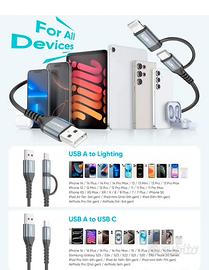 Cavo USB C Light-ning Spirale, 【0.6m-1.5m】 2 in 1 Multi MFI Cavo Light-ning e Cavo USB A a USB C compatibile con iPhone 16/15/14/13, Google Pixel 8, Xiaomi-Grigio