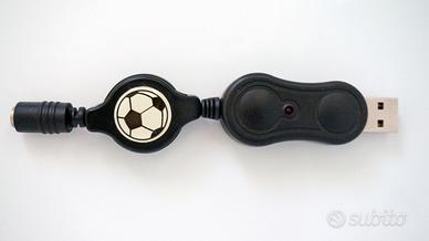 Cavo USB avvolgibile con spia d'accensione ed etichetta con l'immagine di un pallone da calcio.