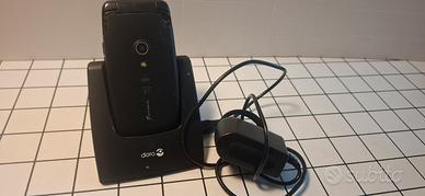 Cellulare Doro Primo 406 nero a conchiglia, di uso facile, adaato per anziani, con tasti grandi, ampio display, funzione Sos, 3 memorie per chiamate dirette. Doro è azienda specializzata per cellulari per anziani. Basetta per ricarica. Pila da sostituire. Tutto il resto cime nuovo.