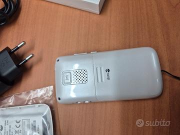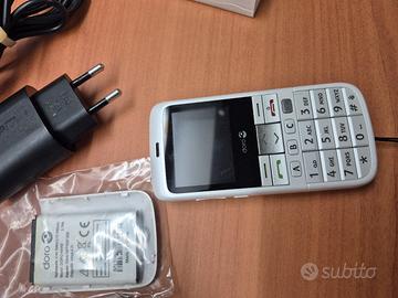 telefono cellulare DORO, per anziani di facile utilizzo con possibilità di chiamare solo i numeri memorizzati, evitando i call center. Munito di tasto di soccorso, con il quale è possibile chiamare immediatamente, premendo un tasto sul retro, uno o più numeri preimpostati. Condizioni pari al nuovo, completo di istruzioni in italiano, caricabatterie, base di appoggio per ricarica, nastro di sicurezza per tenerlo al collo. Numeri ben visibili, facilissimo da utilizzare, schermo grande, audio di elevata qualità. doppia batteria per una grandissima autonomia . Possibilità di inserire sim di qualsiasi operatore telefonico. condizioni pari al nuovo. Auricolari.
