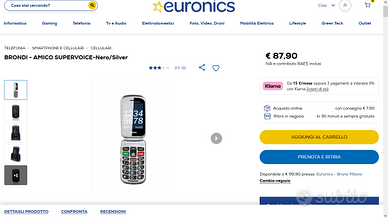 Vendo telefono cellulare Brondi Amico Supervoice, modello dedicato alle persone che necessitano di un aiuto per l’udito. Per tale motivo e' integrata una speciale funzione per amplificare suoni e voce durante una normale conversazione. Tutto questo e' possibile grazie agli speciali auricolari inclusi nella confezione, indossando i quali si potranno sentire meglio le persone intorno a noi. Procedura per metter in funzione l'apparecchio: -Accendi il tuo Amico Supervoice. - Collega gli auricolari speciali che trovi inclusi nella confezione e indossali. - Clicca sul pulsante arancione che trovi sulla tastiera. - Chiudi il telefono e tienilo in tasca. Inoltre, a seconda delle necessità e della situazione, è possibile regolare l'amplificazione con i tasti posti sull'auricolare In questo modo l’audio intorno a te sarà amplificato e non perderai nemmeno più una parola dei discorsi con i tuoi cari. Altra particolarita' di rilievo e' la funzione SOS, attivando la quale, alla semplice pressione sul tasto dedicato, posto centralmente sul retro dell'apparecchio, il telefono, in totale autonomia, inviera' fino a tre persone, scelte in precedenza e presenti nei contatti in rubrica, prima un SMS con richiesta urgente di intervenire, avviando poi una chiamata al primo dei tre numeri, procedendo anche ad attivare il vivavoce, presente sul telefono, in modo che il richiedente non debba fare null'altro che riferire il proprio stato di bisogno di supporto immediato. Funzione extrautile e testata da me piu' volte con esito piu' che positivo. A corredo auricolari, basetta e cavo USB-C, scatola e manuale istruzioni. In ottime condizioni. Non spedisco