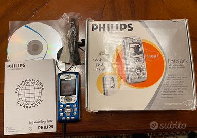 Philips 535 completo di caricatore originale, auricolari e libretto di istruzioni.