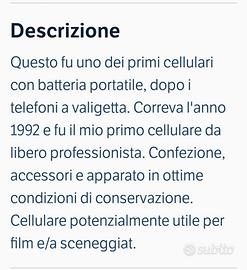 Storico cellulare Vintage, Retro.. Uno dei primi cellulari con batteria portatile, dopo i telefoni a valigetta.