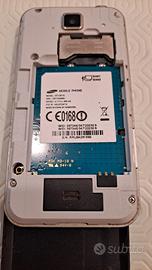 Cellulare touch dual sim, con slot per scheda micro sd, fotocamera da 3,2 mega, quadriband, con carica batteria e cuffiette.