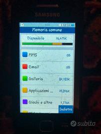 Cellulare Samsung Wave 525 GTS5250 Cellulare datato, funzionante ma come si vede esteticamente usurato sia anteriormente che posteriormente.