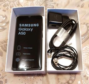 Smartphone Samsung Galaxy A50 128GB memory Dual SIM Display 6,2" full HD funzionante completo di confezione originale con caricatore e auricolare già resettato ai dati di fabbrica senza graffi o altri danneggiamenti