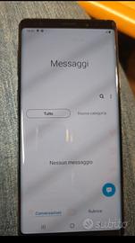 vendo telefono cellulare originale modello SAMSUNG GALAXY NOTE 9 completo di S-pen usato ma in condizioni perfette completo di scatola originale colore blu scuro completo di cover resettato alle condizioni di fabbrica batteria originale, tiene bene display perfettamente funzionante, ma è presente un'ombra sullo sfondo (effetto ghosting) Processore Velocità CPU 2.7GHz, 1.7GHz Tipo CPU Octa-Core Display Dimensioni (Schermo Principale) 162.0mm (6.4" intera superficie del display) / 160.4mm (6.3" superficie del display senza gli angoli stondati) Risoluzione (Schermo Principale) 2960 x 1440 (Quad HD+) Tecnologia (Schermo Principale) dual edge Super AMOLED Profondità dei colori (Schermo Principale) 16M Fotocamera Fotocamera posteriore - Risoluzione 12.0 MP + 12.0 MP Fotocamera posteriore - Apertura focale F1.5/F2.4 (Doppia Apertura Focale), F2.4 Fotocamera posteriore - Auto Focus Sì Fotocamera posteriore - OIS Sì Fotocamera posteriore - Zoom Zoom Ottico a 2x, Zoom Digitale fino a 10x Fotocamera frontale - Risoluzione 8.0 MP Fotocamera frontale - Apertura focale F1.7 Fotocamera frontale - Auto Focus Sì Fotocamera posteriore - Flash Sì Risoluzione registrazione video UHD 4K (3840 x 2160) @60fps Slow Motion 960fps @HD, 240fps @FHD Memoria Dimensione memoria RAM (GB) 8 GB Dimensione memoria ROM (GB) 128 GB Specifiche fisiche Dimensioni (AxLxP, mm) 161.9 x 76.4 x 8.8 Peso (g) 201