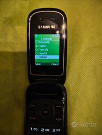 Cellulare a conchiglia Samsung E1270 (conosciuto anche come Samsung GT-E1270), nuovo, (mai usato) caricatore USB piccolo, molto carino, leggero, senza scatola originale, memoria 32 MB. Le lingue da impostare sono nella