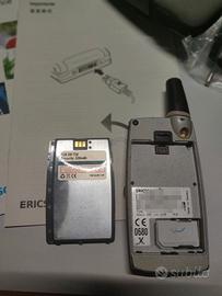 Cellulare Ericsson t28s color sabbia NON BRANDIZZATO perfettamente funzionante, completo di scatola originale, manuali, alimentatore, filo e adattatore per presa italiana, perfettamente conservati senza graffi o scorticature ancora con le buste originali + antenna di ricambio acquistata precauzionalmente + custodia da cintura originale (leggermente sbiadita), il cellulare presenta qualche graffio superficiale dovuto all'uso quotidiano e alla normale usura.