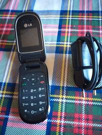 Cellulare vintage LG di piccole dimensioni con filo caricabatterie.