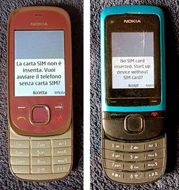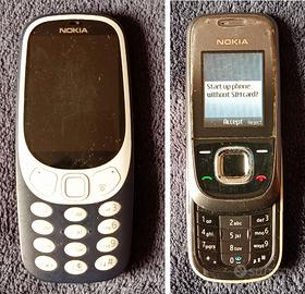 Cellulari vecchio tipo, tutti usati ma funzionanti: Nokia 7230 rosa con alimentatore / Nokia C2-05 blu / Nokia 3310 dark blue / Nokia 2680S-2RM / Nokia 1100 con alimentatore / Alcatel OT-E256 con alimentatore. Prezzi: 30-35 Euro ciascuno se acquistati singolarmente. I 6 cellulari in blocco: 150 Euro.