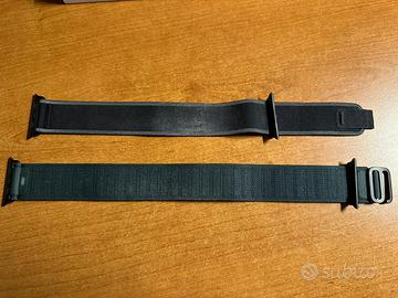 Vendo cinturini originali per Apple Watch Ultra con attacchi in titanio nero compresi di scatola originale. - Trail Loop colorazione nera in buono stato (vedi foto) misura M/L €50 - Alpine Loop colorazione verde foresta in ottimo stato (vedi foto) misura L €60 Se presi insieme offro uno sconto con un totale di €100.