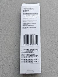 Vendo cinturino Milanese per Smartwatch di colore nero originale Samsung nuovo nella confezione sigillata. • Bracciale in morbido acciaio inossidabile intrecciato • Lunghezza regolabile individualmente grazie alla fibbia deployante - regolabile. • La barra a molla a sgancio rapido consente un facile cambio del cinturino. • Adatto per polsi di circonferenza da 160 a 216 mm. • Compatibile con Galaxy Watch7 (44 mm) |Galaxy Watch6 (44 mm) Galaxy Watch5 pro (45 mm) |Galaxy Watch5 (44 mm) | Galaxy Watch4 (44 mm). Se volete posso fare le foto del cinturino che attualmente sto usando io, in quanto ne avevo acquistati 2. No perditempo, prezzo non trattabile! Per qualsiasi informazione contattatemi.
