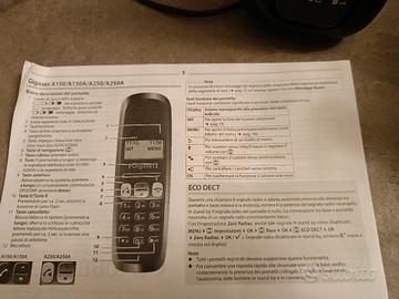 Gigaset A150 cordless,compreso di base, alimentatore per base,un portatile Gigaset ,cavo telefonico e due batterie ricaricabili di tipo ministilo AAA, già in uso, usato poco