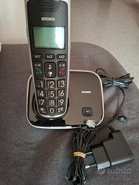 cordless bravo gold marca brondi pari al nuovo. Mai usato. Ampio display alfanumerico retroilluminato di facile lettura, con volume alto degli squilli e dell'ascolto. 5 suonerie, 20 memorie nella rubrica e 3 memorie dirette tramite tasti dedicati. nelle chiamate in entrata è possibile vedere il numero identificativo del chiamante. ideale per anziani ma comodo per tutti