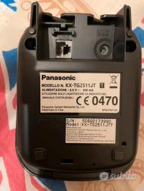 Cordless Panasonic modello KX-TG2511JT, alimentazione 6,5v 500mA,colore nero..sono escluse spese di spedizione.